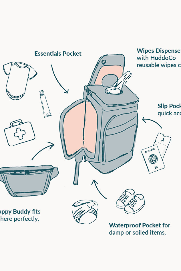 I searched high and low to find 'the perfect baby backpack', but I came up empty handed. I needed something that could hold everything I needed in a functional and ergonomic way (access to what I needed, when I needed it!). I needed a bag that was durable and could handle everything mum-life had to throw at it! (insert spilt yoghurt and leaking milk bottle!). I needed a bag that was beautiful, but unisex so my husband could use it too. I had an extensive list of 'must-haves', but nothing ticked all my boxes, so I decided to create it for myself. I created the Anywhere Backpack. That is how HuddoCo was born.