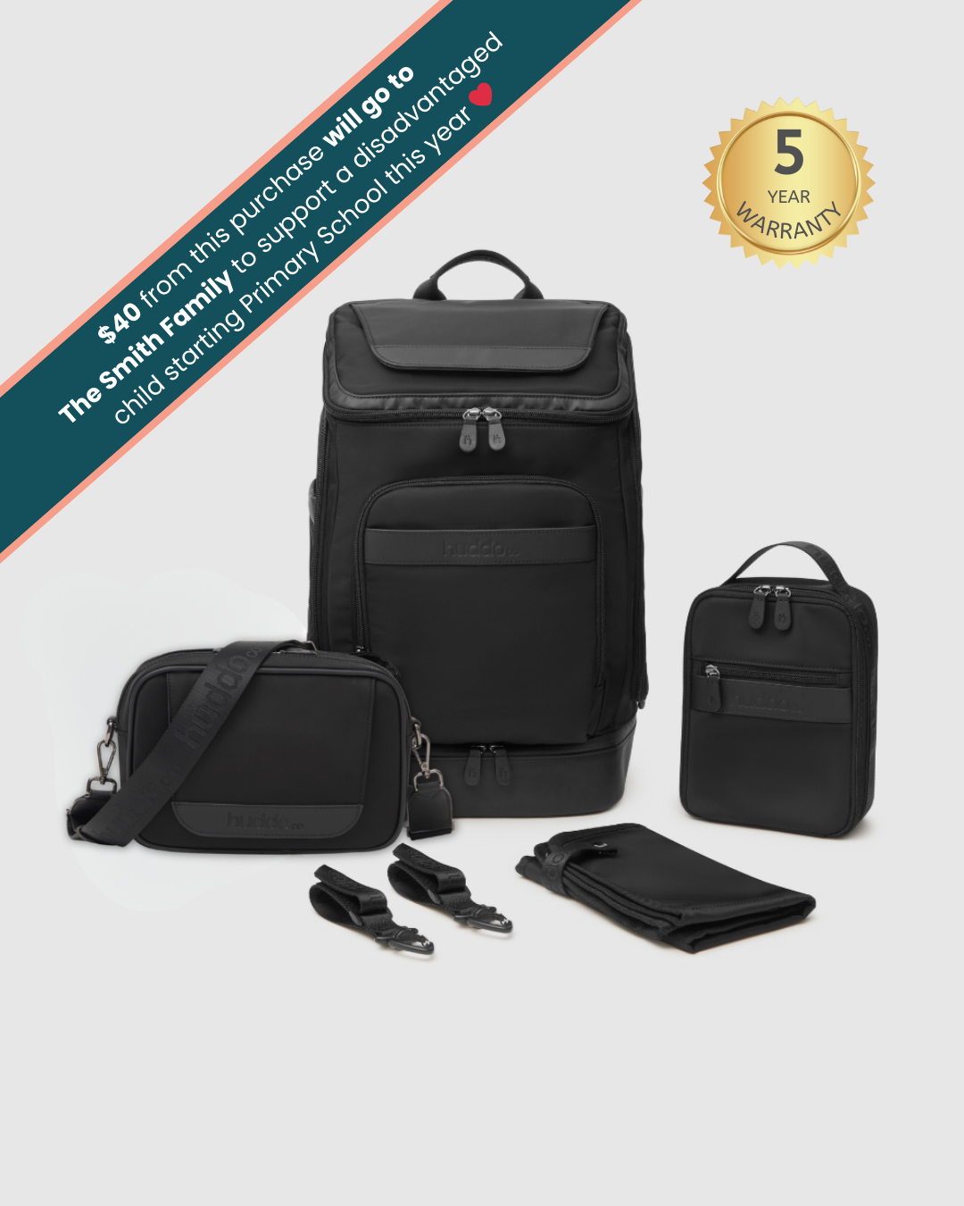This curated set combines our bestselling Anywhere Backpack (comes with pram straps + change mat), the cleverly compact Mum Club Crossbody Bag (with her own change mat), and Lunch Buddy for extra insulated storage, to give you a carry solution that works for every stage of the mum-life.