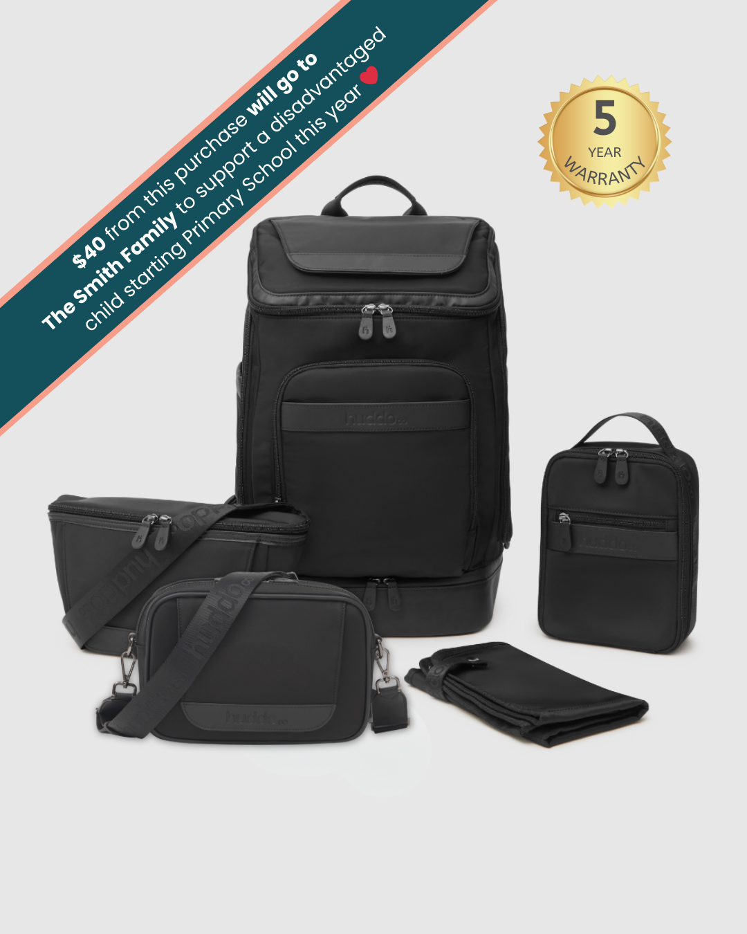 The Signature Bundle brings together every HuddoCo bag in one beautifully curated, chaos-taming, life-organising set. Think of it as the complete HuddoCo ecosystem - ready for newborn days, toddler mayhem, travel adventures, and everything in between.