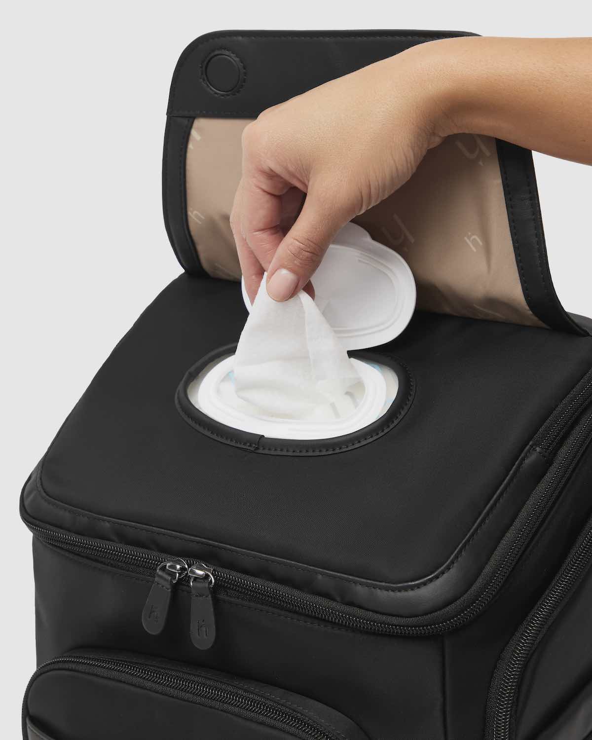 Our favourite compartment? Hard to choose between the quick access wipes dispenser, waterproof pocket or the side pocket, which is the perfect home for your Nappy Buddy (think quick and easy changes on the go).