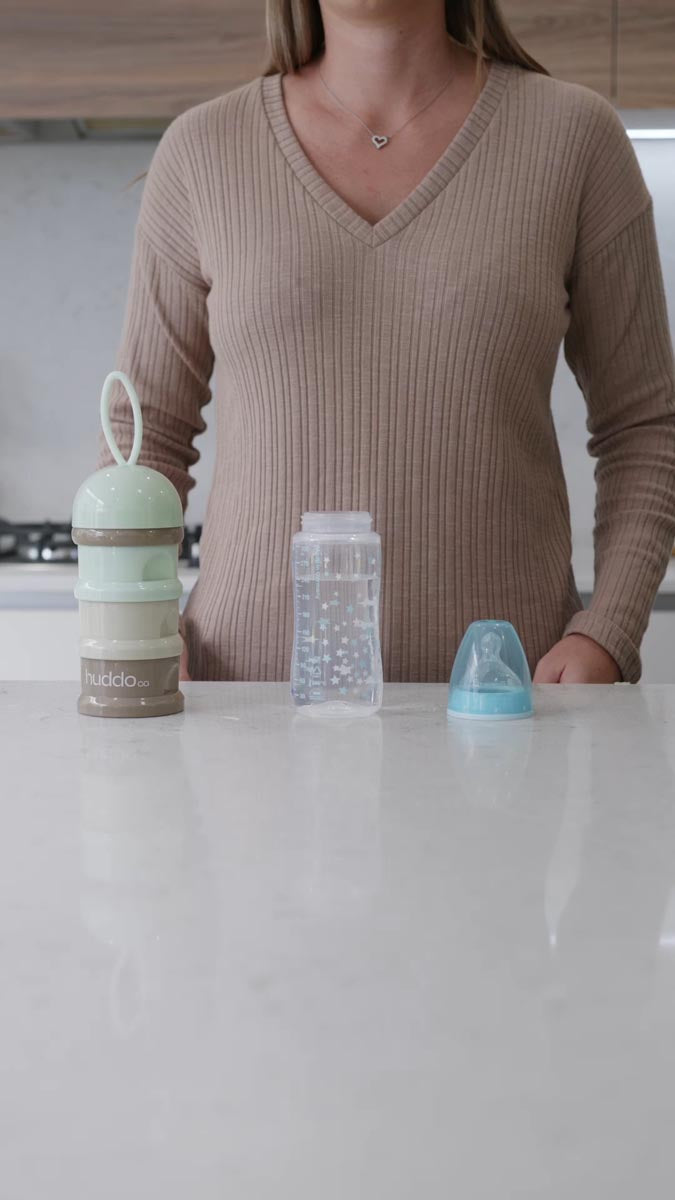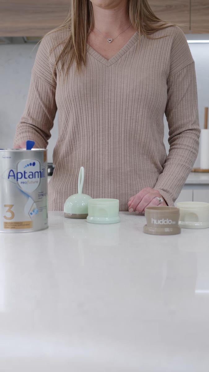 Introducing the HuddoCo Snack Stack – The ultimate multitasking stackable container. It combines a formula dispenser and snack container in one, streamlining your little one’s essentials. Compact and travel-friendly, our Snack Stack is designed to fit seamlessly into your baby bag or handbag, making it the perfect companion for parents on the move.